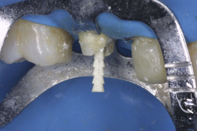 Son aditamentos artificiales colocados en la parte interna de la raíz de dientes con tratamiento endodóntico y con amplia destrucción. Usados comúnmente para soportar coronas completas.